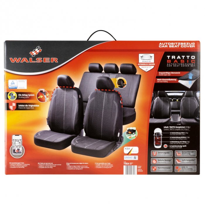 Autopotahy TRATTO jsou vyrobeny a certifikovány atestem pro použití na sedadla vozidel i s bočními airbagy. V případě vystřelení airbagu se roztrhne speciálně ušitý šev na boční straně autopotahu. Autopotahy neklouzají po sedadle díky měkkému molitanu na vnitřní straně potahu. Střed je vyroben z prošívané polyesterové tkaniny. Boky a záda z elastického polyesteru. Potahy předních sedadel mají po horní části zip pro opěrky hlavy, který vede až k bokům pro použití se sklápěcími páčkami. Pro instalaci potahů není nutné odnímat přední opěrky hlavy.Snadnou montáž i na oplastované sedačky zajišťuje elastický pás pro obepnutí na zadní straně sedadla. Zadní sedadla jsou vybavena 3 zipy pro sklopení dělených sedadel a používání zadní loketní opěrky. Autopotahy jsou vhodné do vozidel s nedělenými zadními sedačkami, tak i dělenými zadními sedačkami v poměru 1/3 na obě strany i 50/50. MATERIÁL: Prošívaná polyesterová látka Boky - Elastický polyester 0,5cm PUR pěna TECHNICKÝ POPIS: Vyrobeny a certifikovány atestem pro použití na sedadla vozidel i s bočními airbagy Autopotahy neklouzají po sedadle díky měkkému molitanu na vnitřní straně potahu Na předních sedačkách je předpřipravený otvor pro opěrky hlavy a boční airbag Zadní sedadla jsou vybavena zipy Potahy jsou vhodné do vozidel s dělenými zadními opěradly v poměru 1/3 na obě strany a 50/50 Sada pro 5 sedadel Snadná montáž Autopotahy je možné prát v pračce na 30° Dodáváno v kartonové krabici Balení autopotahů obsahuje 9 dílů: Sedadlo řidiče 1× Opěrná a sedací část 1× Potah opěrky hlavy Sedadlo spolujezdce 1× Opěrná a sedací část 1× Potah opěrky hlavy Zadní sedadla 1× Sedací část 1× opěrná část spojená 3 zipy 3× Potah opěrky hlavy Potahy jsou vhodné pro tato vozidla: Alfa Romeo: 147, 156, 159, Giulietta, MiTo, Stelvio Audi: 50, 80, 90, A1 (2010–), A1 Sportback, A2, A3 (do 2012 i po 2012), A4, A5, A6, A7, A8 (do 2009), Q2, Q3, Q5, Q7, Q8, e-tron BMW: E46, E53, E70, E90, E91, E92, E93, F15, F25, F30, F31, F48, G20, X1, X3, X5, i3, i8 Citroën: Berlingo (do 2008 i novější modely), C1, C2, C3, C3 Aircross, C4, C4 Cactus, C4 Picasso, C5, Visa, Xsara, ZX, C5 Aircross Chevrolet / Daewoo: Aveo, Captiva, Cruze, Impala (od 2020), Matiz, Nexia, Lanos, Spark Dacia: Duster (do 2023 i nový model), Logan I, II, III, Sandero I, II, III, Sandero Stepway I, II, III, Spring Daihatsu: Applause, Charade, Charmant, Cuore, Move, Terios, Wildcat Dodge: Nitro Dongfeng: T5 EVO, Fengguang ix5, Fengon 580 Fiat: 500 (od 2007), 500C, Bravo, Panda (2003–2012), Stilo, Tipo, Doblo, Fiorino Ford: Escort, Fiesta, Focus, Fusion, Ka, Kuga (2008–2013 i novější), Mondeo, Tourneo Connect, EcoSport Honda: Accord, Civic, Concerto, CR-V (do 2006 i novější), HR-V, Jazz (do 2008 i novější), Civic Type R Hyundai: Kona, i10, i20, ix20, Accent (do 2006), Getz, i30, i30 CW, Lantra, Pony, Santa Fe (do 2006 i novější), Tucson (do 2021 i novější), Bayon Kia: Cee’d, Ceed, Picanto, Proceed, Pride, Rio, Sephia, Sorento (do 2009 i novější), Soul, Sportage, Venga, EV6 Lada: 1118–1119 (od 2007) Lancia: Delta (do 1999 i od 2008) Mazda: 2, 2 hybrid, 3, 5, 6, CX-3, CX-5, CX-7, MX-5 Mercedes-Benz: A-Class (W169 i novější), B-Class (T245), C-Class, CLA, CLS, E-Class, GLA, GLB, GLC, GLE, ML, S-Class MG: HS, ZS, Marvel R Mitsubishi: Colt, L200 (od 2006), Lancer (do 2008 i novější), Outlander, Pajero (od 2000), Space Star, Eclipse Cross Nissan: Almera, Cherry, Juke, Maxima QX, Micra (do 2010 i novější), Navara, Patrol, Qashqai, X-Trail Opel: Agila (do 2008), Astra F, G, H, J, Combo, Corsa A, B, C, D, Insignia, E, Crossland, Grandland Peugeot: 206, 206+, 207, 208, 306, 307, 308, 4007, 406, 407, 5008, 3008 Renault: Captur, Clio, Clio RS, Laguna, Megane I, II, III, IV, Rapid, Scenic, Talisman, Kadjar, Zoe Rover: Mini Seat: Altea, Altea XL, Arosa, Cordoba, Exeo, Exeo ST (od 2009), Ibiza, Leon, Terra, Toledo (do 2004), Arona, Ateca Škoda: Fabia I, II, III, IV, Octavia I, II, III, IV, Superb I, II, III, IV, Karoq, Kodiaq Subaru: E10, Impreza, Libero, Forester, XV Suzuki: Baleno, Ignis, Swift (do 2010 i novější), Vitara (od 2014), SX4, Jimny Toyota: Auris (2007–2012), Auris Hybrid (2010–2012), Avensis, Camry, Celica, Corolla, Prius, Rav4 (od 2005 i novější), Starlet, Tercel, Yaris, Yaris Cross, C-HR, Hilux Volkswagen: Fox, Golf (VII i novější), Golf Plus, Jetta (do 2010 i novější), Passat (od 1996 i novější), Polo, Scirocco, Tiguan, Touareg (do 2010 i novější), ID.3, ID.4 Volvo: V50 (2004–2012), V60, V70, S40, S60, XC40, XC60, XC90 Nové čínské značky dostupné na evropském trhu (včetně modelů s 1/3–2/3 i 50/50 dělením sedadel): SsangYong (KGM): Korando, Torres, Tivoli, Musso, Rexton BYD: Tang, Atto 3, Han, Yuan Plus NIO: ES8, ES6, EC6 XPeng: P7, G3, P5 Great Wall Motors: Ora Good Cat, Wey VV7, Tank 300 MG: ZS EV, HS Plug-in Aiways: U5 Seres: Seres 3 Seznam vozidel je průběžně testován a zahrnuje většinu modelů, které mají 5 sedadel, dělenou zadní lavici v poměru 1/3–2/3 i 50/50 a oddělené opěrky hlavy. U velmi nových, prémiových nebo málo rozšířených vozidel doporučujeme předem ověřit kompatibilitu (kontaktujte nás).- Materiál: Polyester