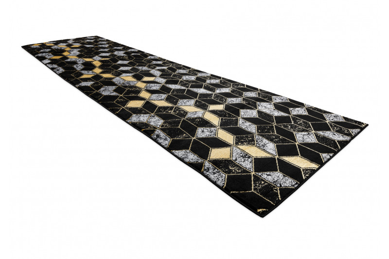 Běhoun Gloss 400B 86 3D geometric black/gold - 60x300 cm