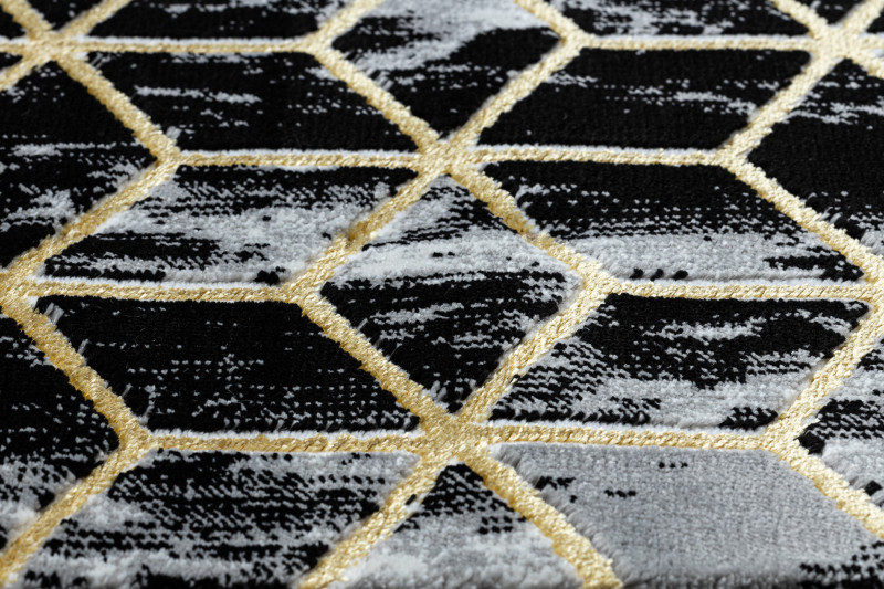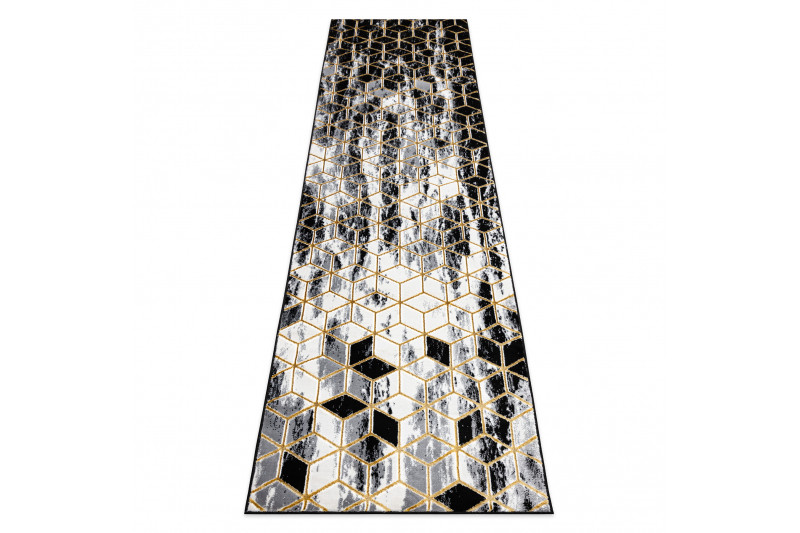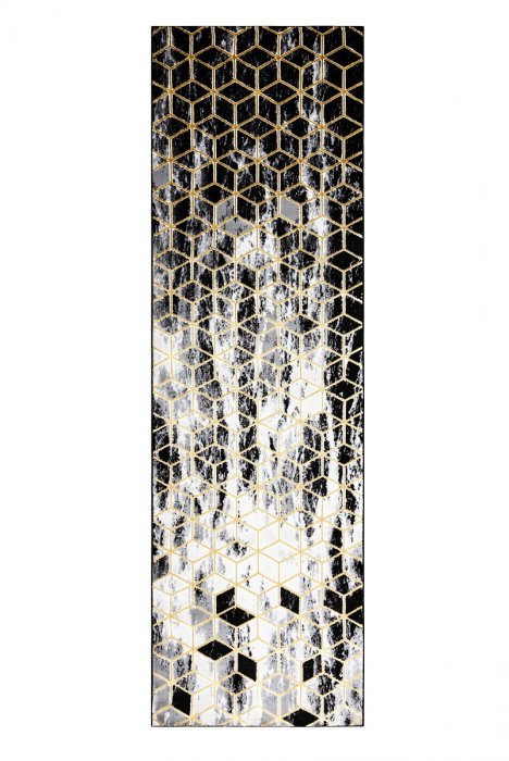 Běhoun Gloss 409A 82 3D cubes black/gold/grey - 70x200 cm