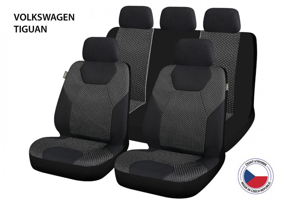 Autopotahy pro Volkswagen Tiguan jsou dostupnou alternativou k dražším potahům na míru. Unikátní střih dělá z této sady semi-speciál vhodný k montáži na širokou škálu vozů. Autopotahy Perfetto GL jsou vyrobeny a certifikovány atestem pro použití na sedadla vozidel i s bočními airbagy. V případě vystřelení airbagu se roztrhne speciálně ušitý šev na boční straně autopotahu. Autopotahy neklouzají po sedadle díky měkkému molitanu na vnitřní straně potahu. Středové části jsou vyrobeny z prošívané polyesterové tkaniny v Žakárovém stylu s dodatečným polstrováním. Boky a záda z elastického polyesteru. Na potazích předních i zadních sedaček je předpřipravený otvor pro opěrky hlavy. Potah je kompatibilní se sedačkami s odnímatelnými opěrkami hlavy. Zároveň je na boku předních sedadel otvor pro sklápěcí páčky. Zadní sedadla jsou vybavena zipy pro sklopení dělených sedadel v poměru 1/3 a pro použití zadní loketní opěrky. Sedák je vybaven otvory pro zámky pásů. Zadní opěradlo je vybaveno dalšími otvory pro použití 3. bezpečnostního pásu, sklápěcích hmatníků, apod. Střih LIMA je revoluční design firmy CAPPA pro zajištění maximální univerzálnosti potahu. Zámky pásů můžete vést skrze otvor v sedáku, opěrky hlavy a 3. bezpečnostní pás mají připravené prostorné otvory a zipy na vrchní straně opěradla. Pro pásy zabudované přímo v zadním opěradle jsou na krajích také připravené otvory. MATERIÁL: Prošívaná polyesterová látka v Žakárovém stylu Elastický polyester 3mm PUR pěna TECHNICKÝ POPIS: Vyrobeny a certifikovány atestem pro použití s bočními airbagy Autopotahy neklouzají po sedadle díky měkkému molitanu na vnitřní straně potahu Předpřipravené otvory pro opěrky hlavy a sklápěcí páčky Zadní sedadla jsou vybavena zipy Potahy jsou vhodné do vozidel s dělenými zadními sedačkami v poměru 1/3 na obě strany Kompatibilní se zadní loketní opěrkou, 3. pásem i integrovanými pásy Sada pro 5 sedadel Snadná montáž Autopotahy je možné prát v pračce na 30° Balení autopotahů obsahuje 11 dílů: Sedadlo řidiče 1× opěrná část 1× sedací část 1× potah opěrky hlavy Sedadlo spolujezdce 1× opěrná část 1× sedací část 1× potah opěrky hlavy Zadní sedadla 1× sedací část spojená 2 zipy 1× opěrná část spojená 2 zipy 3× potah opěrky hlavyDoprava ZDARMA po celé ČR