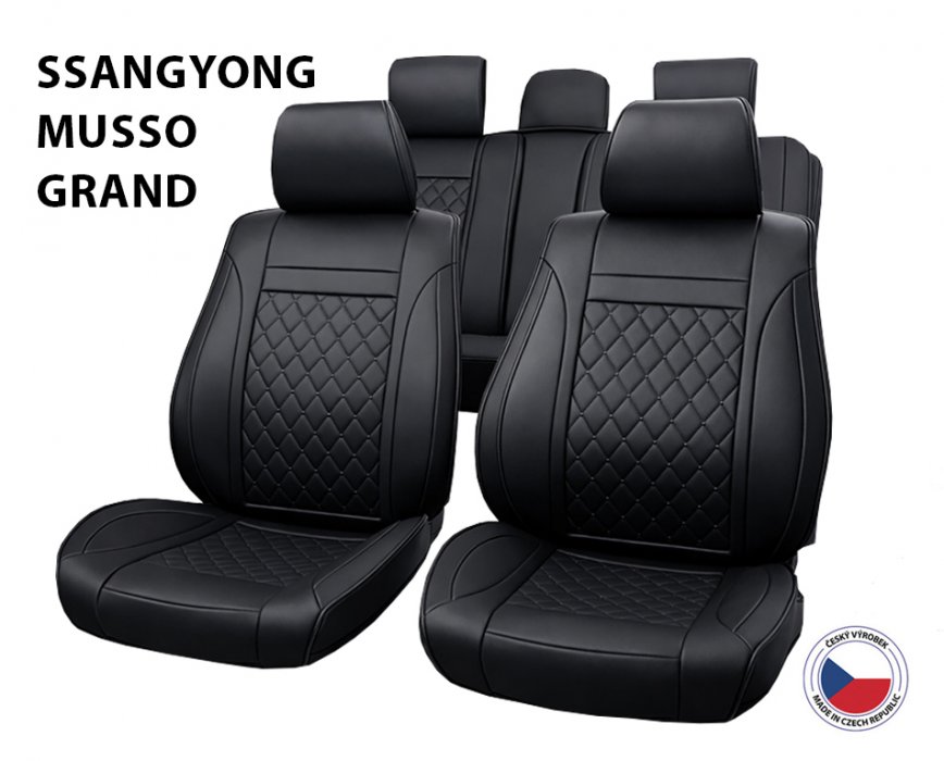 Autopotahy Perfetto VL pro SsangYong Musso Grand jsou dostupnou alternativou k dražším potahům na míru. Unikátní střih dělá z této sady semispeciál vhodný k montáži na širokou škálu vozů. Autopotahy neklouzají po sedadle díky měkkému molitanu na vnitřní straně potahu. Středové části jsou vyrobeny z eko kůže. Boky z elastického polyesteru a záda z elastického polyesteru. Na potazích předních sedaček je předpřipravený otvor na zip pro opěrky hlavy. Potah je kompatibilní se sedačkami s odnímatelnými opěrkami hlavy. Zároveň jsou vybaveny kapsami na přední straně sedáku a na zadní straně opěradla. Zadní sedadla se skládají z 9ti dílů. Středové díly jsou s bočními spojeny jemnými suchými zipy pro možnost sklápění sedadel, použití středové loketní opěrky, apod. Zadní díly zároveň nezakrývají boky a zadní strany sedadel pro maximální kompatibilu a možnost použití bezpečnostních pásů, páček pro sklápění, apod. MATERIÁL: Eko kůže (PVC) Elastický polyester 5mm PUR pěna TECHNICKÝ POPIS: Vyrobeny a certifikovány atestem pro použití s bočními airbagy Autopotahy neklouzají po sedadle díky měkkému molitanu na vnitřní straně potahu Potahy jsou vhodné do vozidel s jakýmkoliv dělením zadních sedaček Kompatibilní se zadní loketní opěrkou, 3. pásem i integrovanými pásy Sada pro 5 sedadel Snadná montáž Eko kůže zajistí snadnou údržbu a luxusní vzhled Balení autopotahů obsahuje 13 dílů: Sedadlo řidiče 1× opěrná a sedací část 1× potah opěrky hlavy Sedadlo spolujezdce 1× opěrná a sedací část 1× potah opěrky hlavy Zadní sedadla 3× opěrná část spojená suchými zipy+ 2x potah opěrky hlavy 3× sedací část spojená suchými zipy 1× potah středové opěrky hlavyDoprava ZDARMA po celé ČR