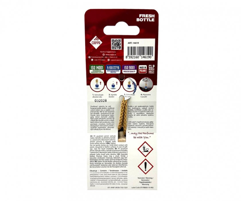Popis Cappa Autovůně Wood Fresh Bottle New Car -