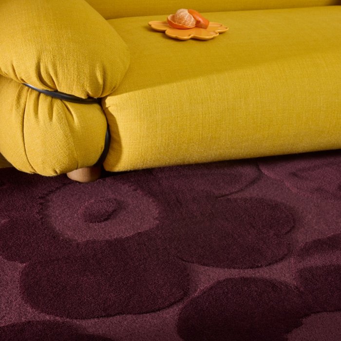 Luxusní vlněný koberec od finské značky Marimekko Unikko burgundy - výrobce Brink&Campman s plastickým květinovým vzorem. Ručně tkaný... Více informací