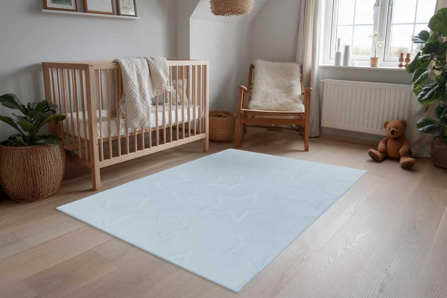 Dětský koberec Bambi je vyroben ze 100% polyesteru, rubová strana je opatřeba protiskluzovou úpravou. Díky 3D technologii zpracování jsou do koberce vlisovány ornamenty ve tvaru hvězdičky,kytičky nebo mráčku.