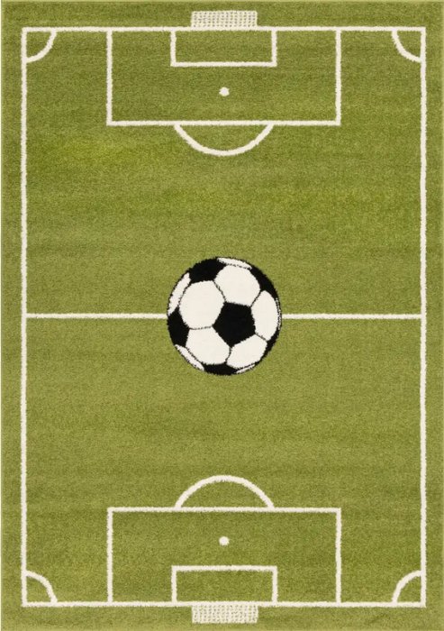 Dětský koberec HOP s motivem fotbalového hřiště je pro kluky do pokojíčku jak dělaný.