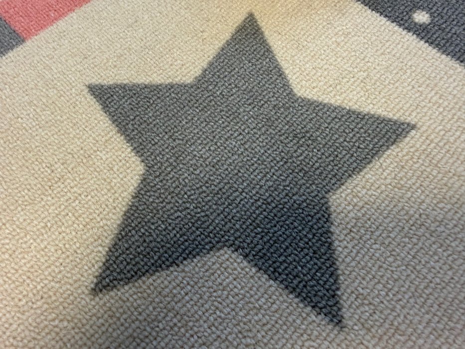 Dětský koberec SPARK z klasického smyčkového materiálu s motivem hvězdiček a puntíčků v příjemné růžovopudrové barvě je pěkným doplňkem pro malé slečny. Rubová strana je opatřena pevným povrchem AB.