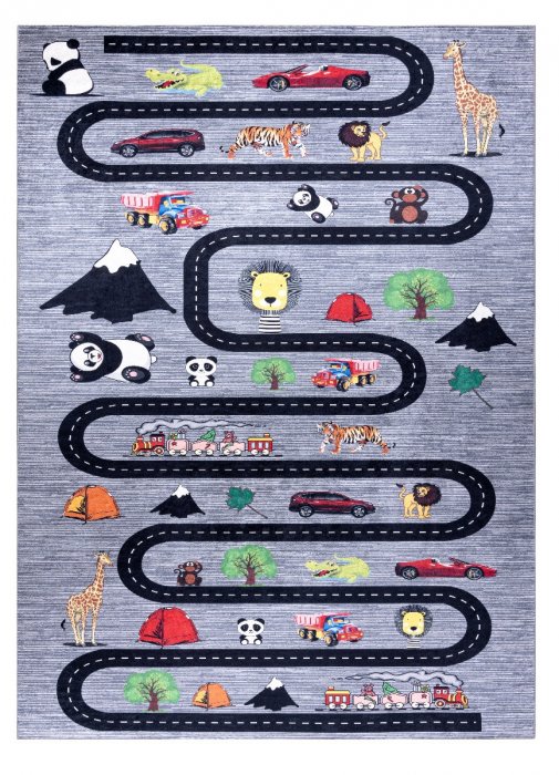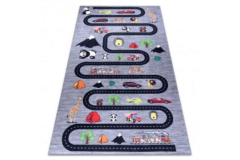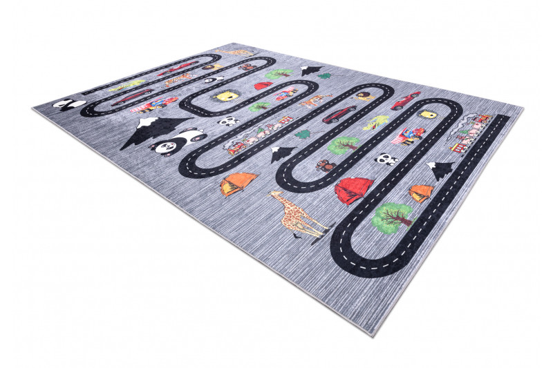 Dětský kusový koberec Bambino 2092 Streets cars anthracite - 80x150 cm