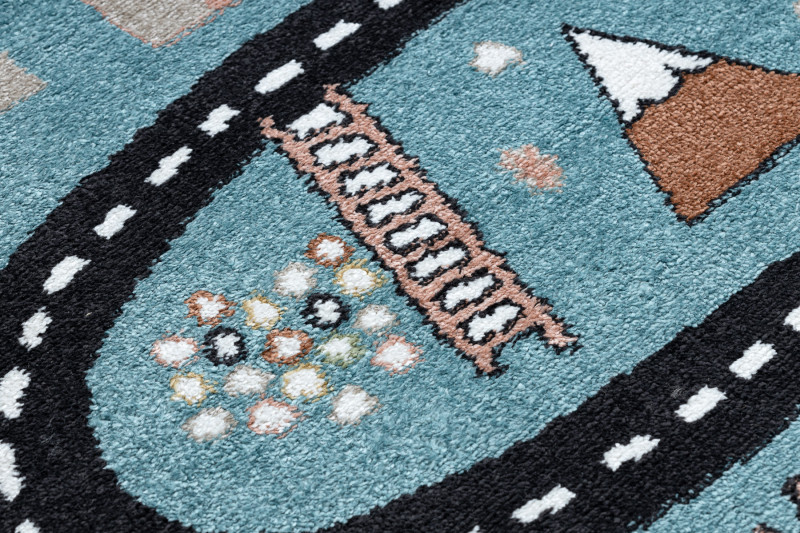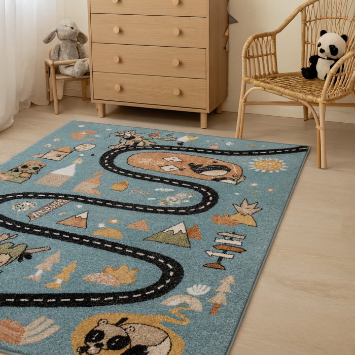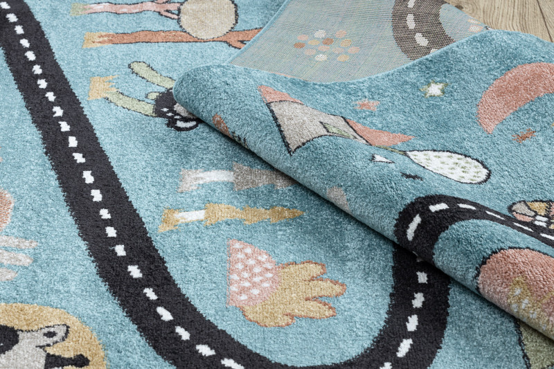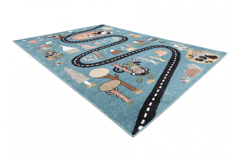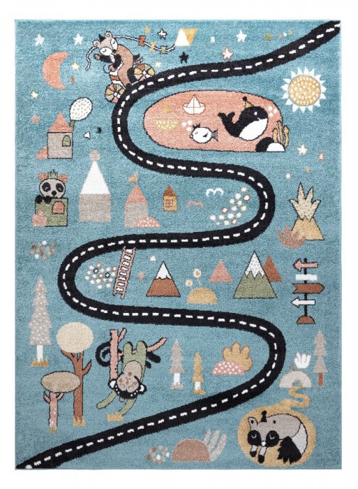 Dětský kusový koberec Fun Route Street animals blue - 80x150 cm