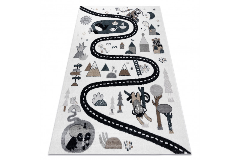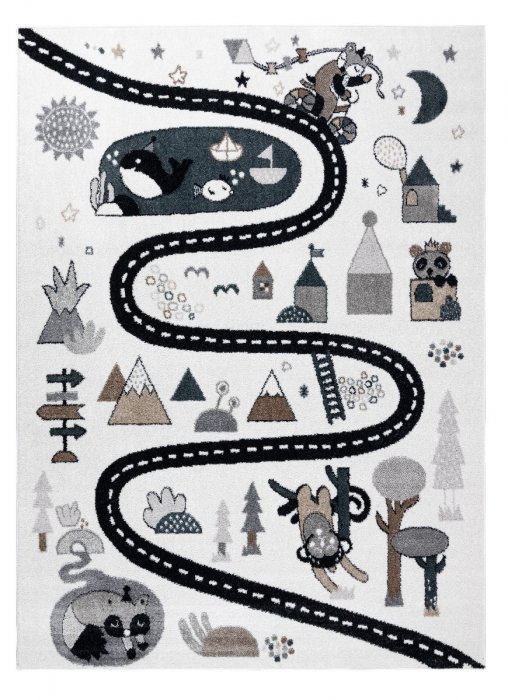 Dětský kusový koberec Fun Route Street animals cream - 80x150 cm
