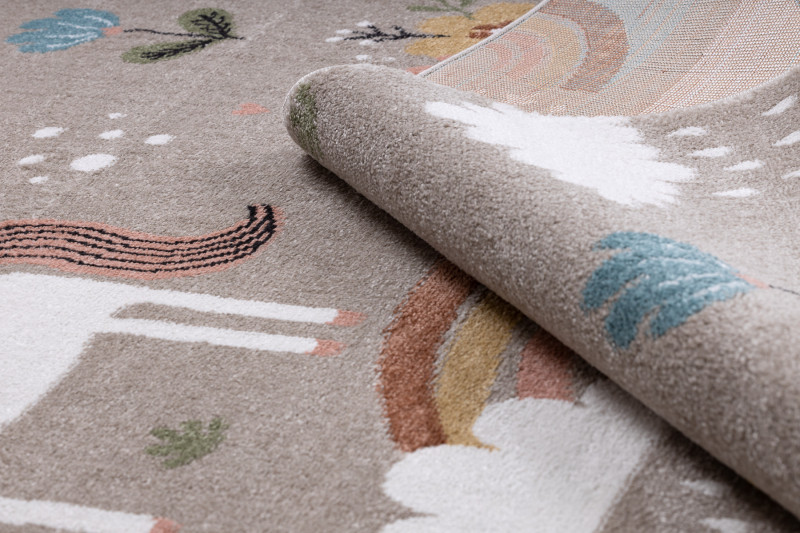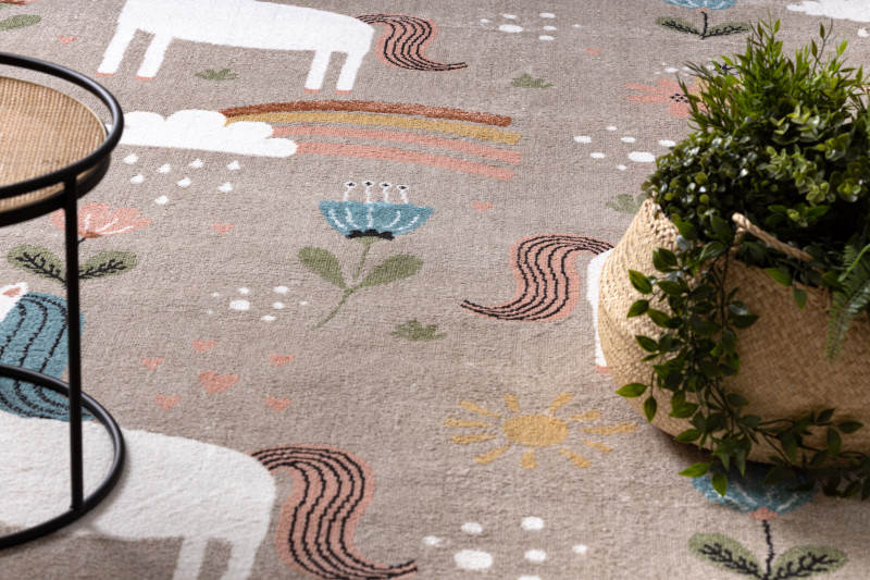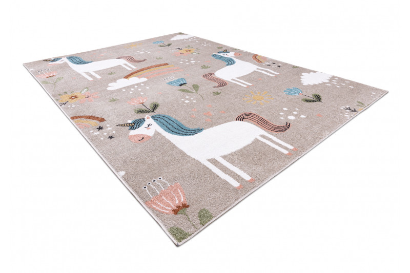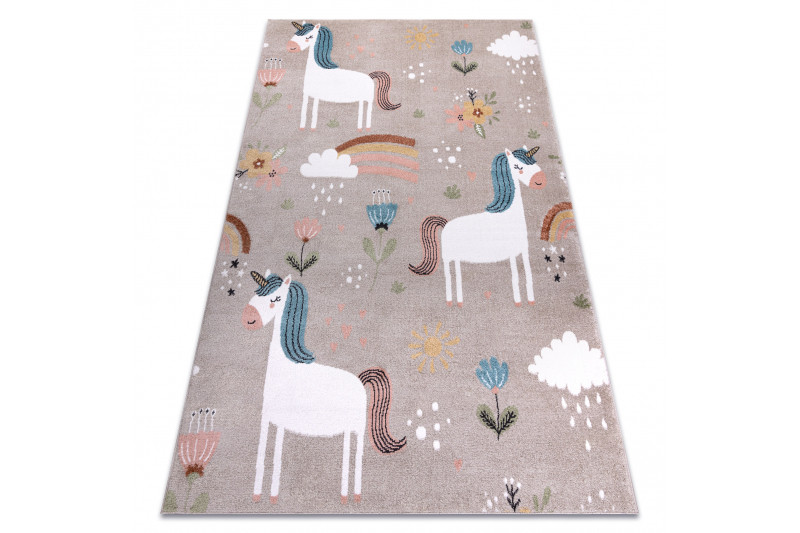 Dětský kusový koberec Fun Unicorn with rainbow beige - 80x150 cm