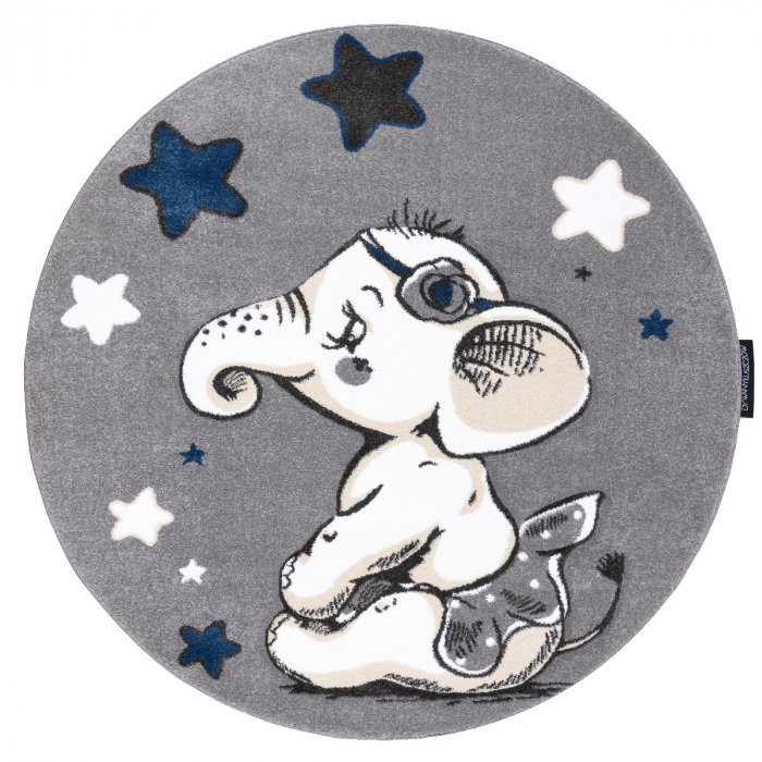 Popis Dětský kusový koberec Petit Elephant stars grey kruh - 120x120 (průměr) kruh cm