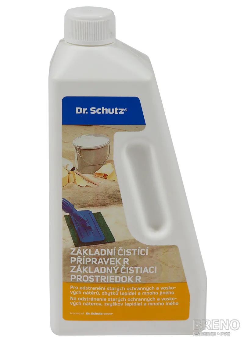 DR. SCHUTZ CC ZÁKLADNÍ ČISTICÍ PŘÍPRAVEK R je velmi silným pomocníkem při odstraňování starých zbytků ochranných prostředků z podlah vyrobených z PVC, CV, přírodního i syntetického kamene, kaučuku či linolea.
