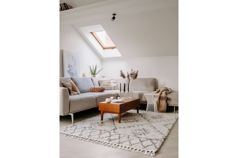 Kobercová řada Berber s vysokým shaggy vlasem v jednoduchých a geometrických vzorech. Vlas koberce je velmi silný, pružný a je velmi hustě vsazený do koberce a vytváří velmi měkký a příjemný pocit na dotek. Barvy jsou zvoleny velmi decentní a jemné, hlavně v odstínech krémové, šedé a béžové. Uplatnění najdou ve velké škále různých typů interiérů, kterým vytvoří velmi příjemné a pohodové kouzlo. koberce jsou vyrobeny z velmi kvalitního polypropylenu, který jim vypůjčuje velkou stálost. Koberce jsou z kratší strany zakončené spletenými střapci.Dywany ŁuszczówSpolečnost Dywany Łuszczów vznikla roku 1995. V průběhu let vybudovala maloobchodní prodejní síť prodejen. Nyní nabízí velký výběr koberců, běhounů a podlahových krytin z PVC.- Tvar: obdélníkový