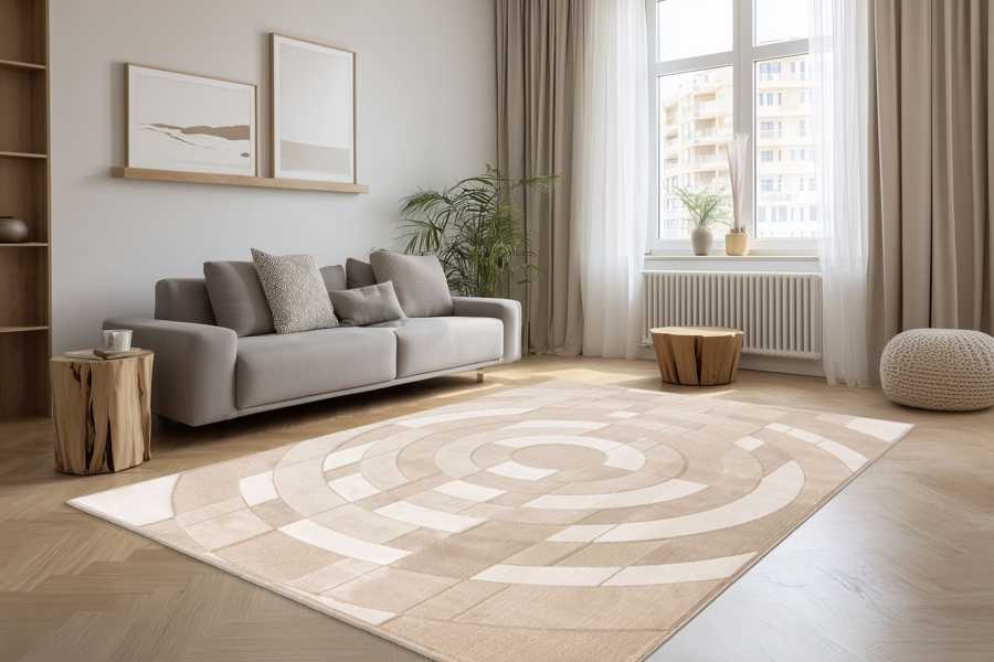 Kusové koberce Bergamo vsází na geometrické tvary a přírodní barevné tóny.
