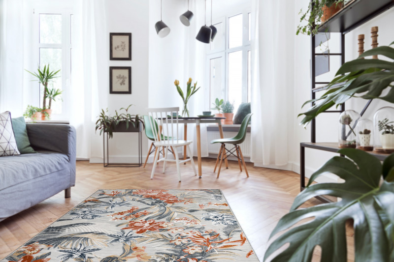 Popis Kusový koberec Botanic 65262 flowers grey – na ven i na doma - 117x170 cm