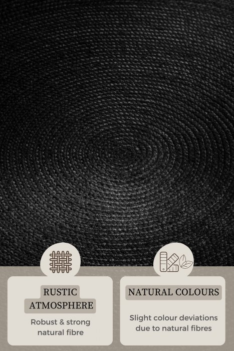 Popis Kusový koberec Jute Braided 106322 Black kruh - 100x100 (průměr) kruh cm