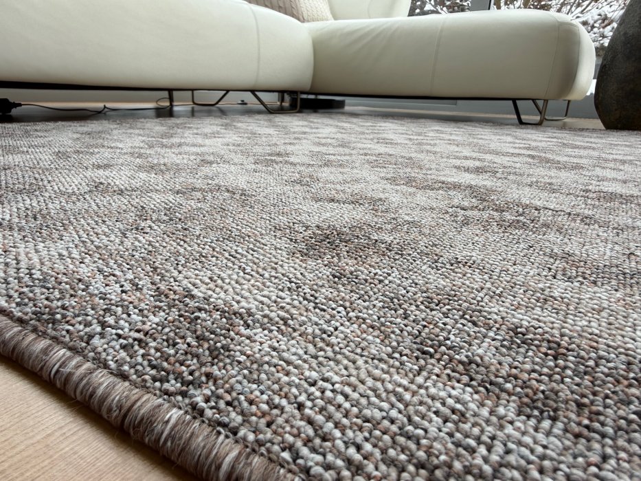 Madrid hnědý je koberec se smyčkovým vlasem a melírovaným vzorem. Obě tyto vlastnosti,jak smyčka,tak melír splňují kladné požadavky u zákazníka,tedy,že se koberec lehce "nesešlápne",je tedy vhodný i do kuchyní a chodeb a melírek schová i malé drobečky či nechtěné flíčky.Na omak je příjemný. Rubová strana je opatřena filcem,který plní funkci jak protihlukovou,tak je koberec měkčí na došlap.