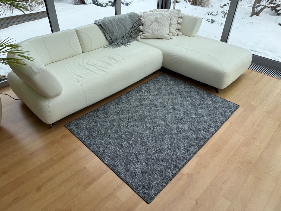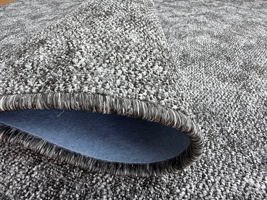 Madrid šedý je koberec se smyčkovým vlasem a melírovaným vzorem. Obě tyto vlastnosti,jak smyčka,tak melír splňují kladné požadavky u zákazníka,tedy,že se koberec lehce "nesešlápne",je tedy vhodný i do kuchyní a chodeb a melírek schová i malé drobečky či nechtěné flíčky.Na omak je příjemný. Rubová strana je opatřena filcem,který plní funkci jak protihlukovou,tak je koberec měkčí na došlap.
