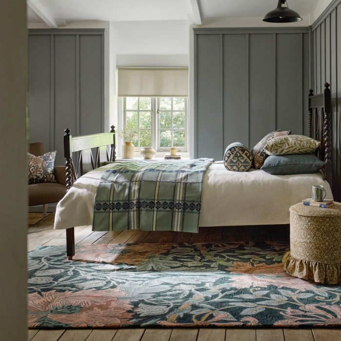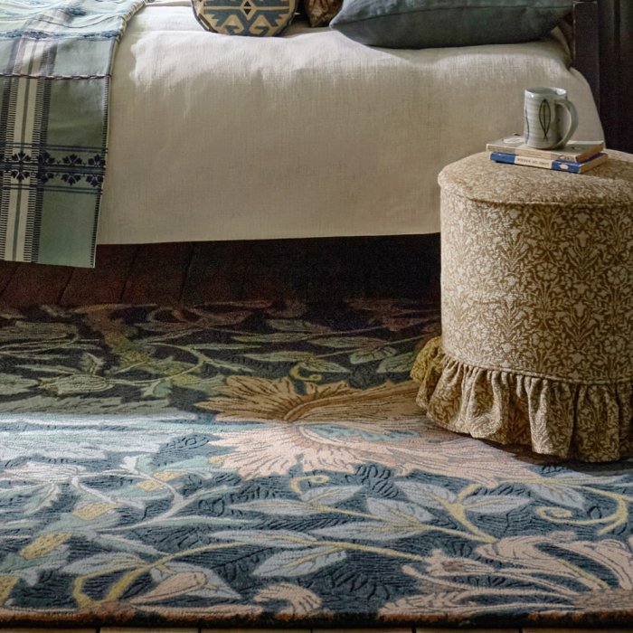 Popis Květinový vlněný koberec Morris & Co Honeysuckle&Tulip teal 130407 Brink & Campman - 140 x 200