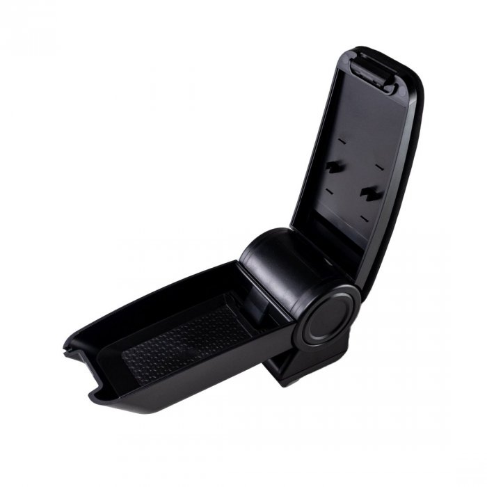 Vrchní část loketní opěrky je dle Vašeho výběru potažena jemnou textilií černé barvy. Samozřejmostí je možnost odklopení vrchní části loketní opěrky, kde je úložný prostor, který je opatřen gumovou protiskluzovou podložkou. Uvnitř opěrky jsou na spodní části víka umístěny dva držáky na tužku a držák na mince.