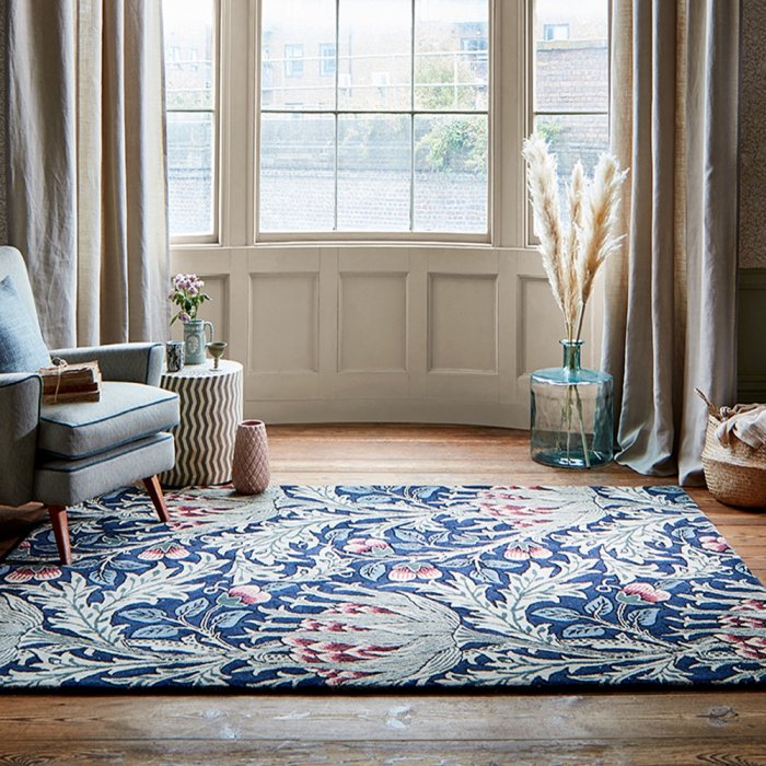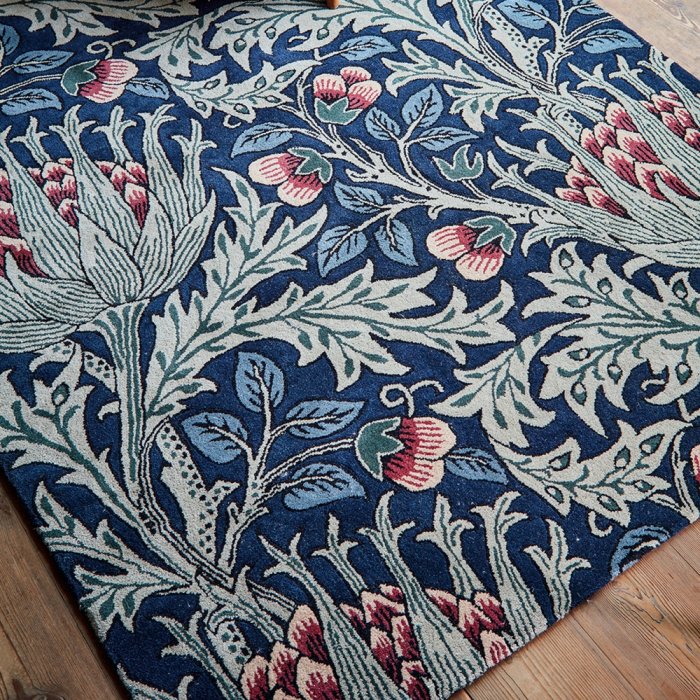 Společnost Morris & Co vyrábí řadu originálních, Morrisových, ikonických vzorů, na ručně všívaných kobercích.