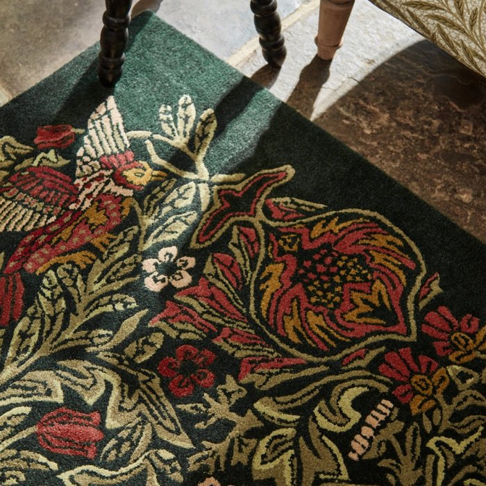 Společnost Morris & Co vyrábí řadu originálních, Morrisových, ikonických vzorů, na ručně všívaných kobercích.