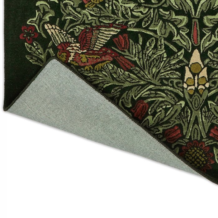 Barevný kusový koberec Morris & Co - Bird tump green s bohatým ornamentem květin a ptáčků. Pestrý koberec, kde převládá zelená barva, doplněná... Více informací