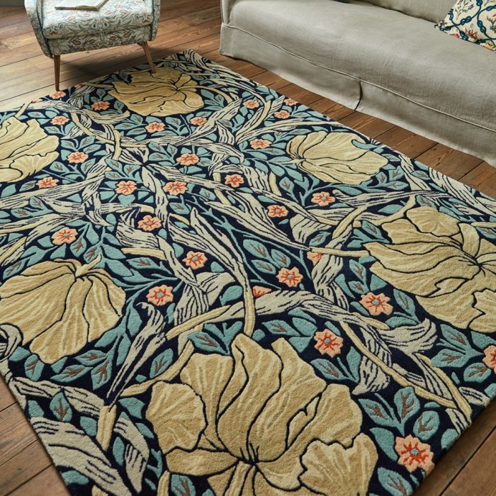 Společnost Morris & Co vyrábí řadu originálních, Morrisových, ikonických vzorů, na ručně všívaných kobercích.