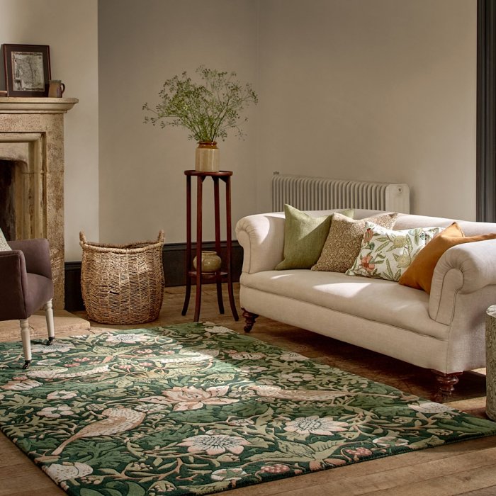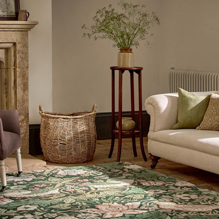 Společnost Morris & Co vyrábí řadu originálních, Morrisových, ikonických vzorů, na ručně všívaných kobercích.