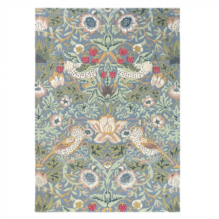 Barevný kusový koberec Morris & Co - Strawberry Thief slate s bohatým motivem exotických květin, lesních jahod a ptactva. Velice kvalitní... Více informací