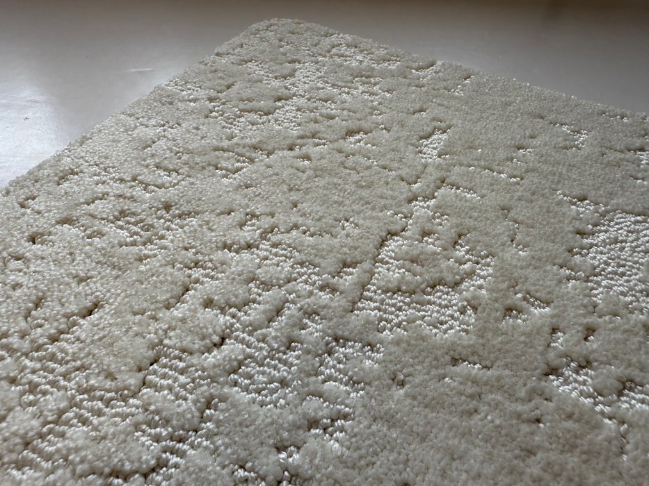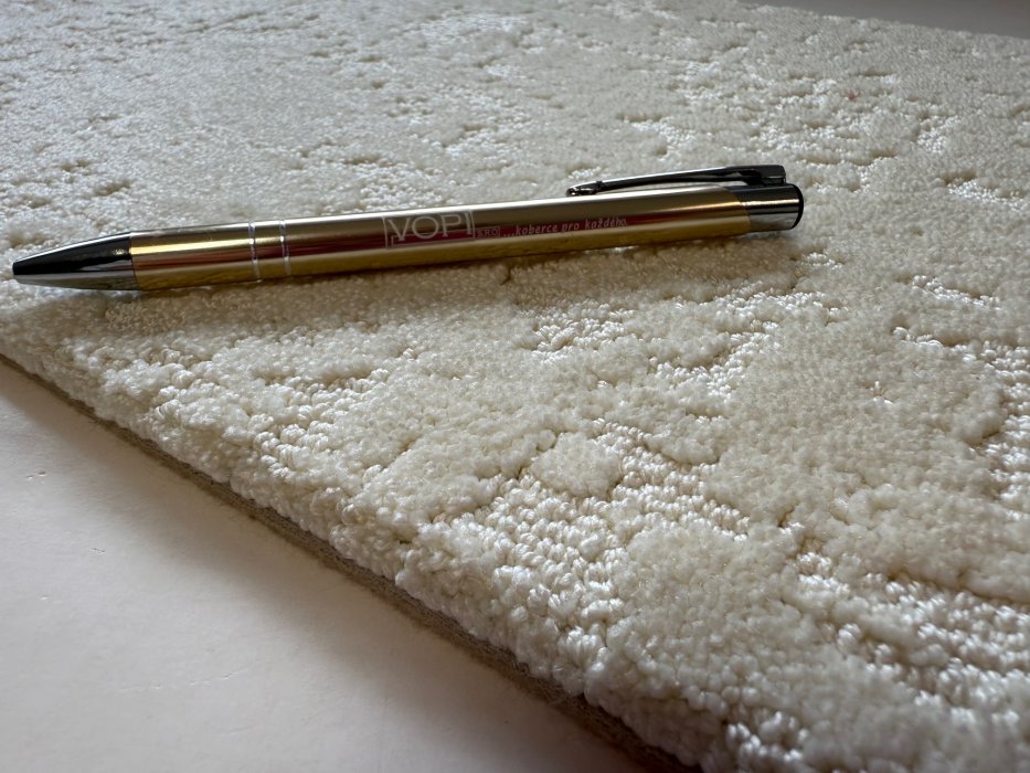 Jemný vlas na dotek je velmi příjemný, decentní plastický vzor vytváří výrobní technologie vlasu střiženého a smyčkového.