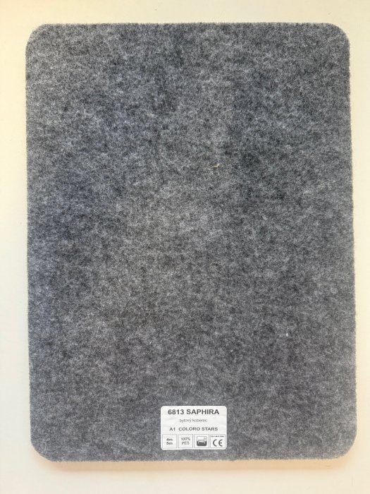 Koberec SAPHIRA se vyrábí v šíři 4 a 5 m. Na přání zákazníka zhotovíme i kusový koberec na míru v obdélníkovém,čtveratém,oválném či kruhovém tvaru včetně obšití v barvě koberce.