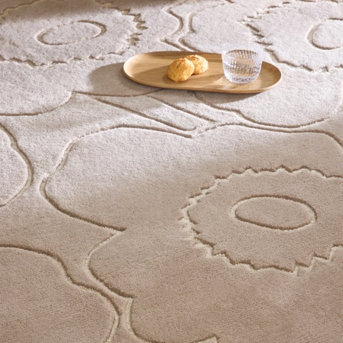 Luxusní vlněný koberec od finské značky Marimekko Unikko Piirto - výrobce Brink&Campman s plastickým květinovým vzorem.