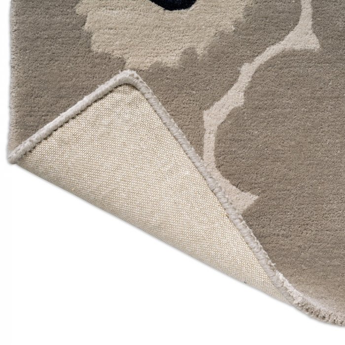 Luxusní vlněný koberec od finské značky Marimekko Unikko - výrobce Brink&Campman s květinovým motivem v šedé barvě.