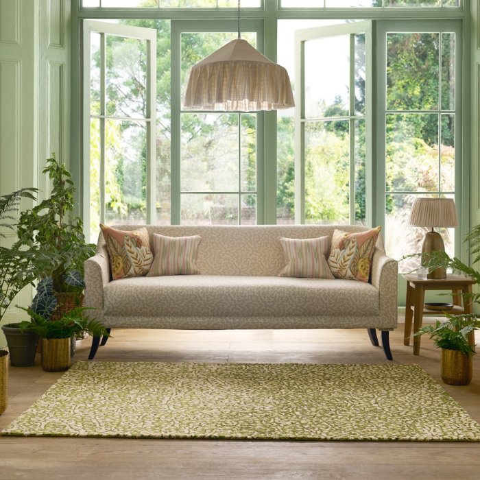 Moderní venkovní koberec Sanderson Truffle olive.