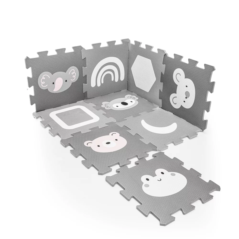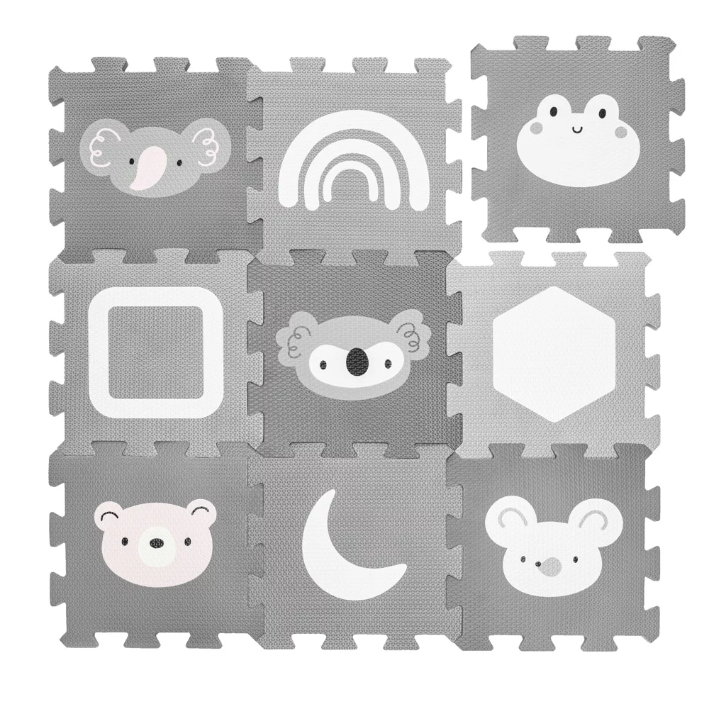 Jednotlivé dlaždice 30 × 30 cm (9 ks) na sebe perfektně navazují. Podložka je vhodná pro děti od narození, vyrobená z nezávadného a příjemného materiálu.