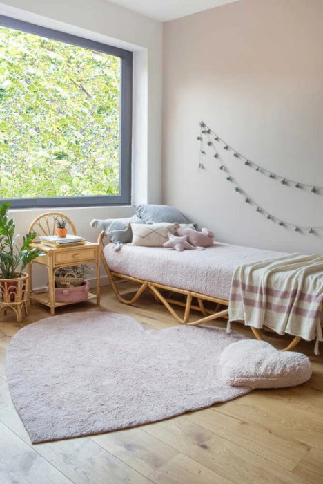 Přírodní koberec, ručně tkaný Puffy Love - 160x180 srdce cm