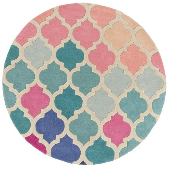 Popis Ručně všívaný kusový koberec Illusion Rosella Pink/Blue kruh - 160x160 (průměr) kruh cm