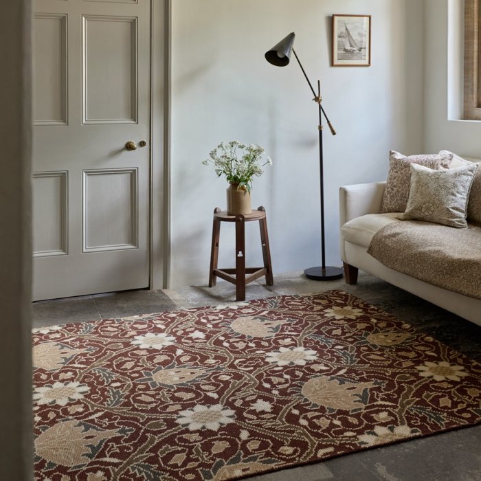 Barevný kusový koberec Morris & Co - Montreal Russet, tzv. "buklák". Pestrý koberec, s bohatým vzorem květin s nádechem... Více informací