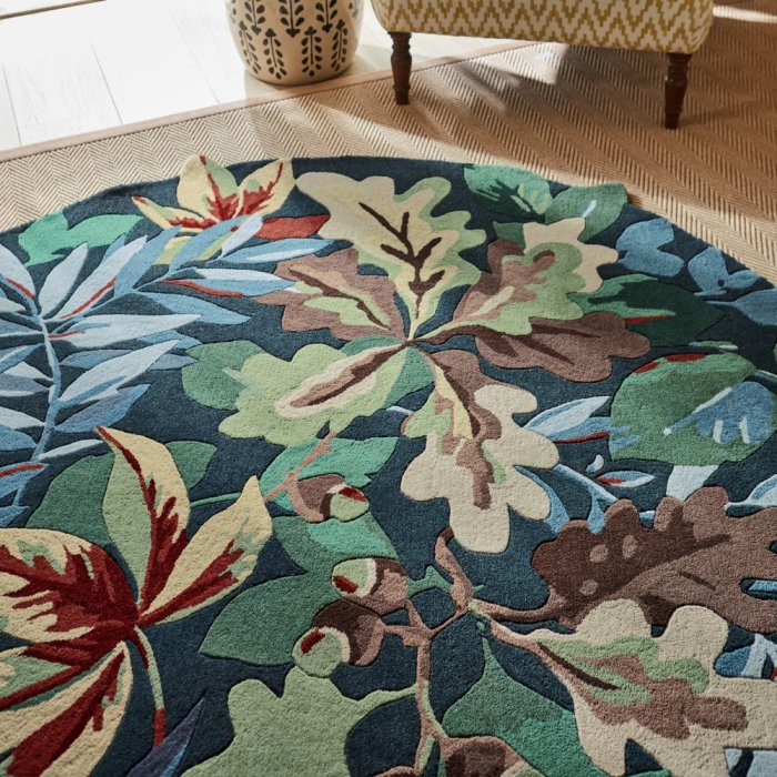 Rádi se na podzim brouzdáte ve spadaném, barevném listí? Tak toto je přesně koberec pro Vás. Luxusní kruhový koberec Sanderson Robin´S Wood.