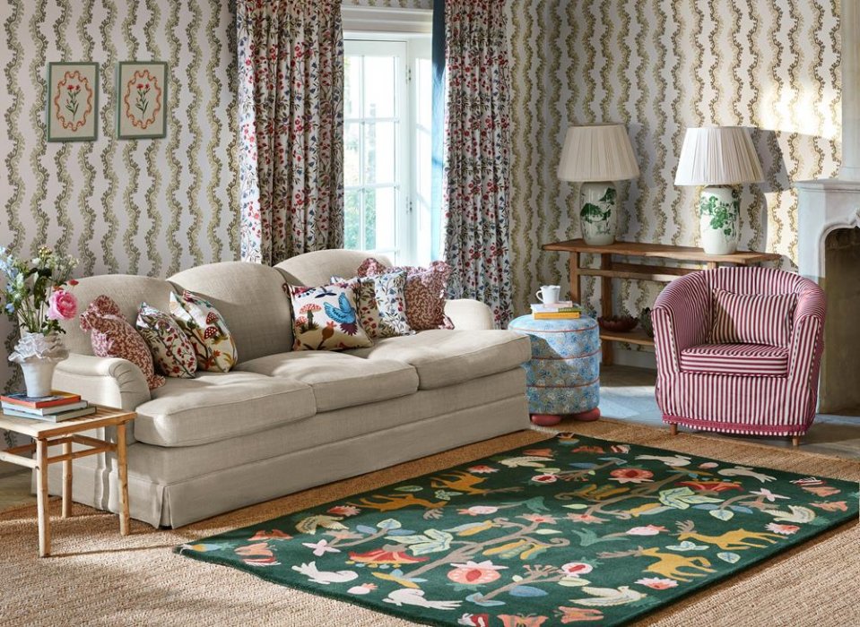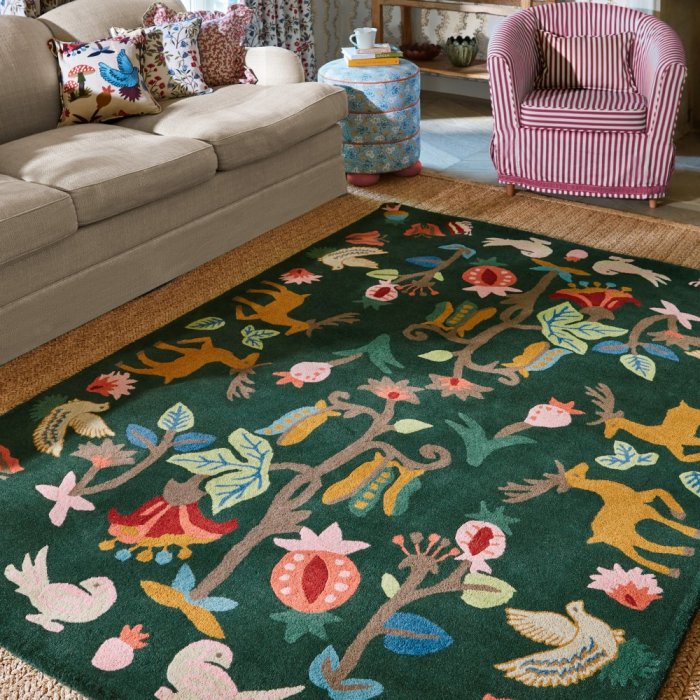 Luxusní vlněný koberec Sanderson Forest of Dean s motivem lesa a jeho obyvatel. Ručně tkaný vlněný koberec s vysokým... Více informací