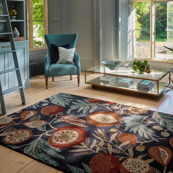 Popis Vlněný kusový koberec Sanderson Jackfruit tumeric - indigo 148708 Brink & Campman - 140 x 200