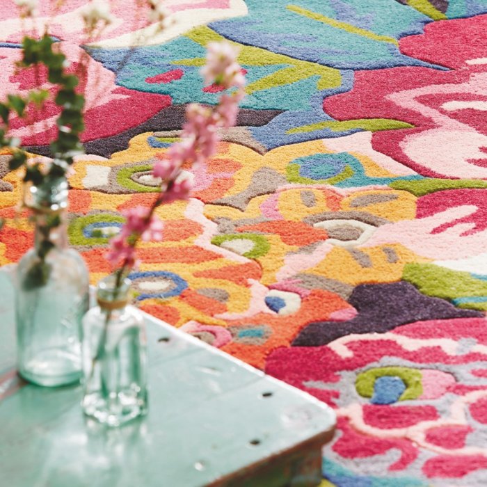 Moderní květinový koberec se vzorem růží a pivoněk je jako stvořený pro romantické duše, nebo třeba květinové děti. Díky svému veselému barevnému vzoru vnese do vašeho interiéru letní pohodu v kterémkoli ročním období.